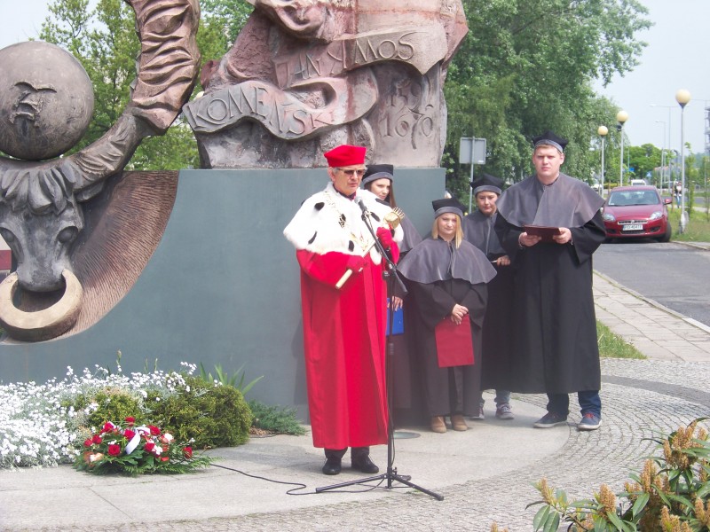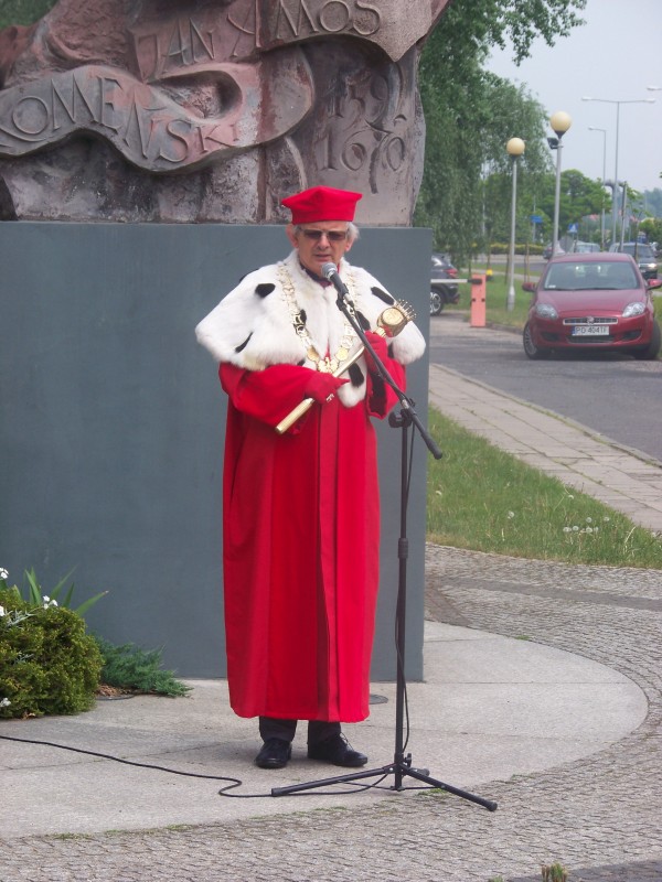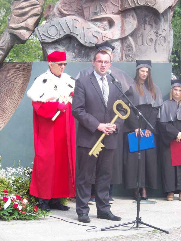 Uroczystość rozpoczęła się od przemówienia rektora prof. dr hab. Macieja Pietrzaka. Rektor uczelni przypomniał wszystkim w jakim charakterze przybył do Leszna Jan Amos Komeński – Patron uczelni zjawił się tutaj jako uchodźca, a więc osoba która zmuszona jest opuścić rodzinne strony ze względu na prześladowania polityczne czy religijne tak jak było w tym wypadku. Ta decyzja zawsze połączona jest z olbrzymią traumą. Nie pojawił się tutaj jako polityk, turysta czy też biznesmen, tylko zjawił się tutaj jako uchodźca.