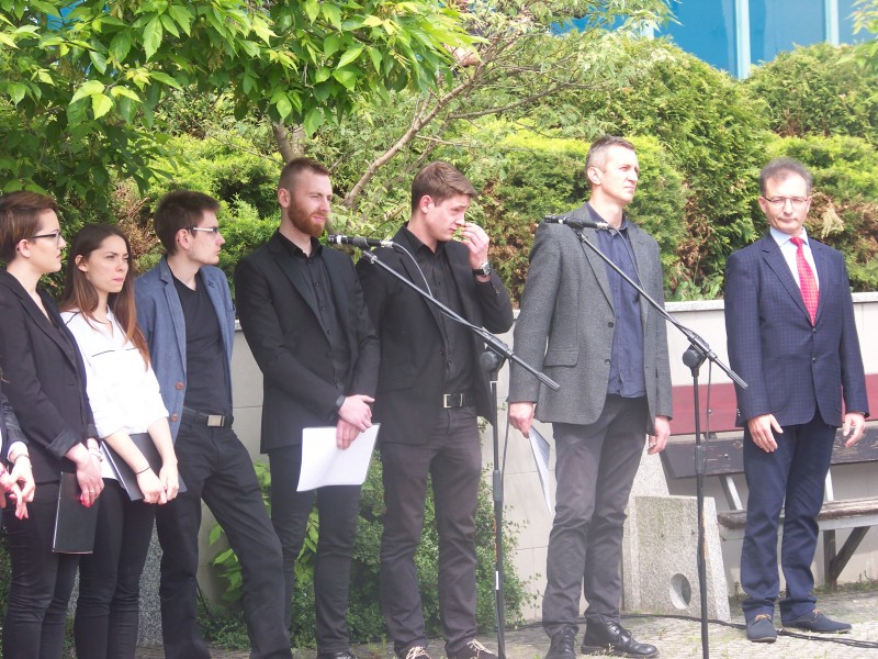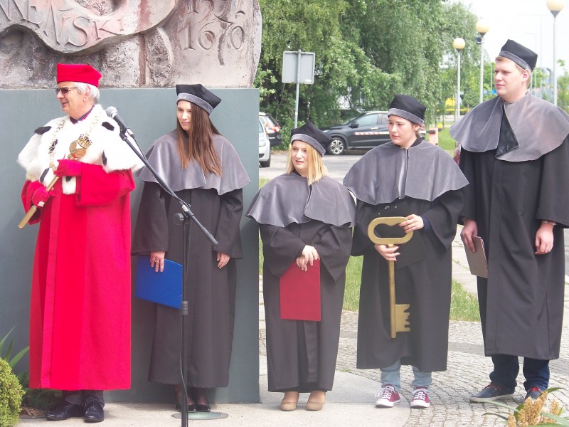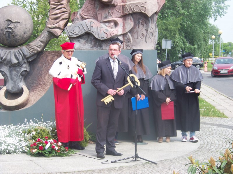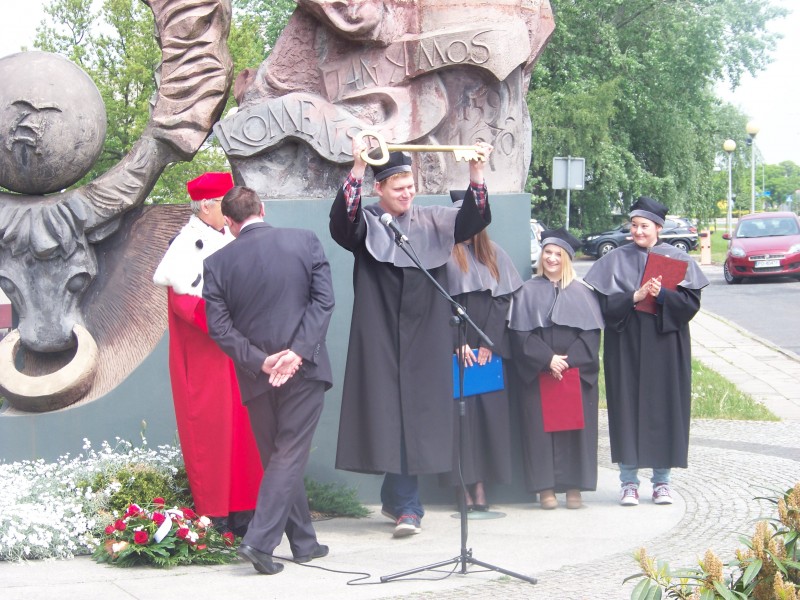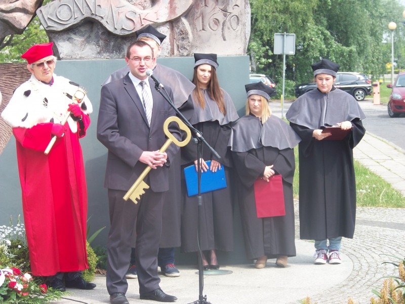 Następnie przyszedł czas na wiceprezydenta Piotra Jóźwiaka – Nie może być silnego miasta bez silnej uczelni, a silnej uczelni bez silnych studentów, bez studentów zadowolonych. Dzięki sile uczelni będzie rosła siła miasta – powiedział, po czym przekazał symboliczny klucz do bram miasta przewodniczącemu Parlamentu Studenckiego PWSZ Patrykowi Józefowiczowi.