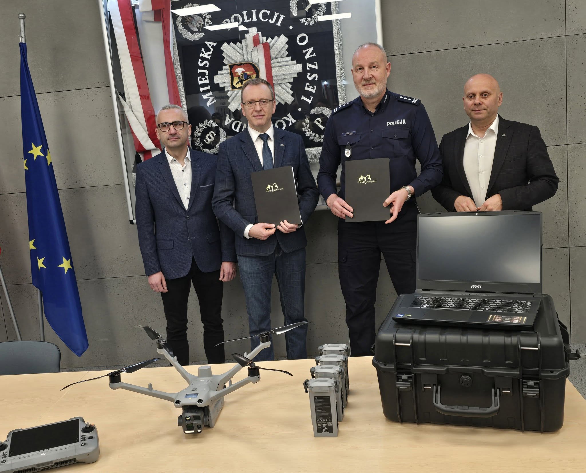Leszczyńska policja może od dziś poszczycić się nowoczesnym sprzętem. Do komendy trafił nowy dron DJI Matrice 4TD – sprzęt wart ok. 60 tys. zł, który w całości sfinansowało Starostwo Powiatowe w Lesznie. Urządzenie odebrał komendant miejski policji w Lesznie insp. Piotr Gorynia podczas przekazania z udziałem władz powiatu.