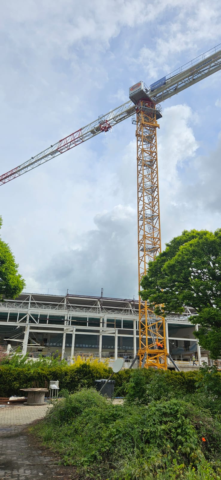 Prace modernizacyjne na terenie pływalni Akwawit w Lesznie wchodzą w nową, kluczową fazę. Na placu budowy trwa właśnie montaż dużego dźwigu obrotowego – żurawia Liebherr 202 EC-B 10, który odegra istotną rolę w demontażu starej konstrukcji dachu obiektu.